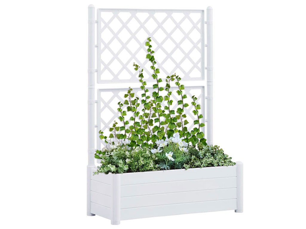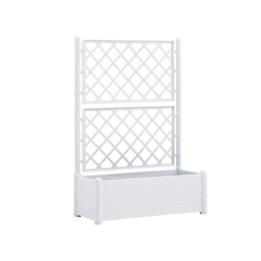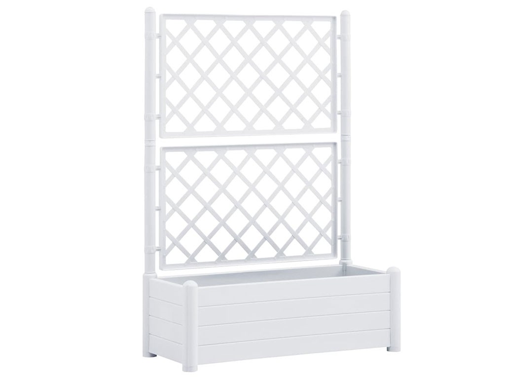 Skrzynia z kratką i drenażem na dnie, do stosowania na zewnątrz , wykonana z polipropylenu, kolor biały, pojemność 80l, wymiary 100x43x142cm.