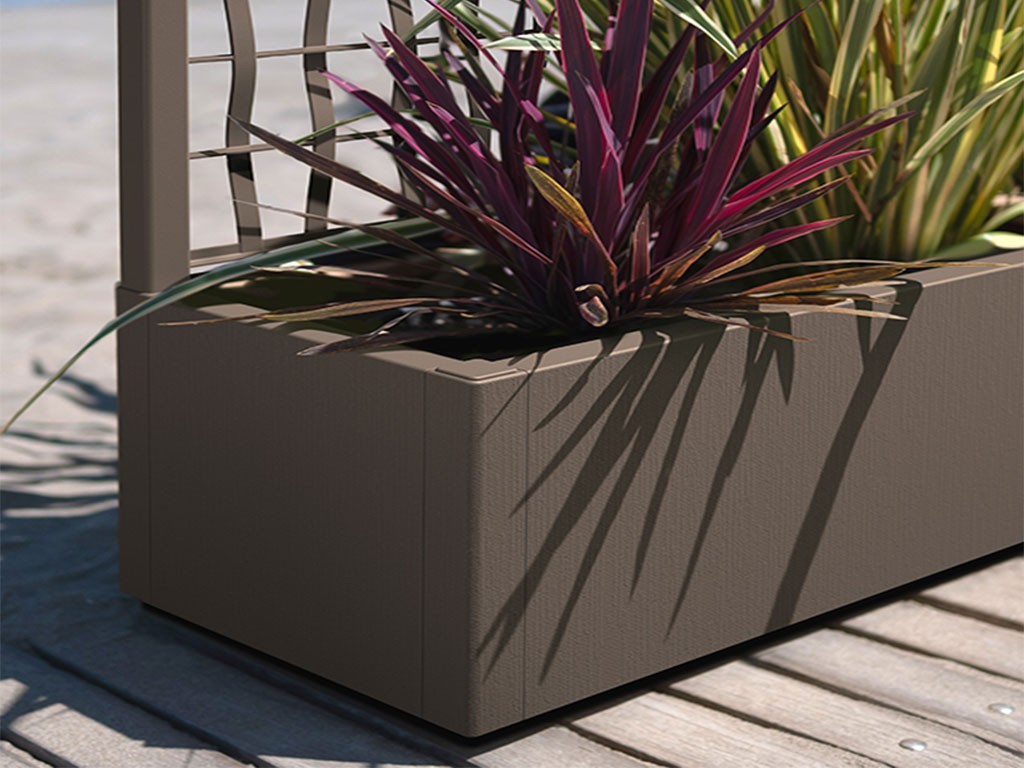 Skrzynia z kratką i drenażem na dnie, do stosowania na zewnątrz , wykonana z polipropylenu, kolor jasnobrązowy, pojemność 80l, wymiary 80x36x142cm.