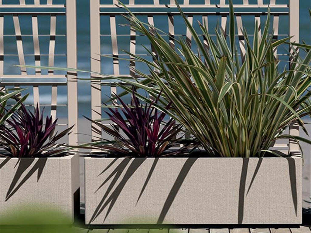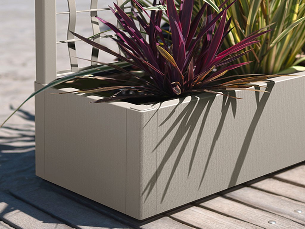 Skrzynia z kratką i drenażem na dnie, do stosowania na zewnątrz , wykonana z polipropylenu, kolor kremowo-biały, pojemność 80l, wymiary 80x36x142cm.
