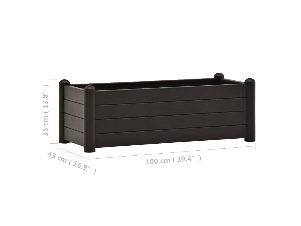 Skrzynia z dnem drenażowym, do stosowania na zewnątrz , wykonana z polipropylenu, kolor antracytowy, pojemność 80l, wymiary 100x43x35cm.