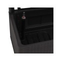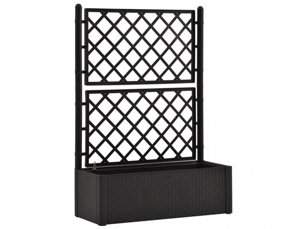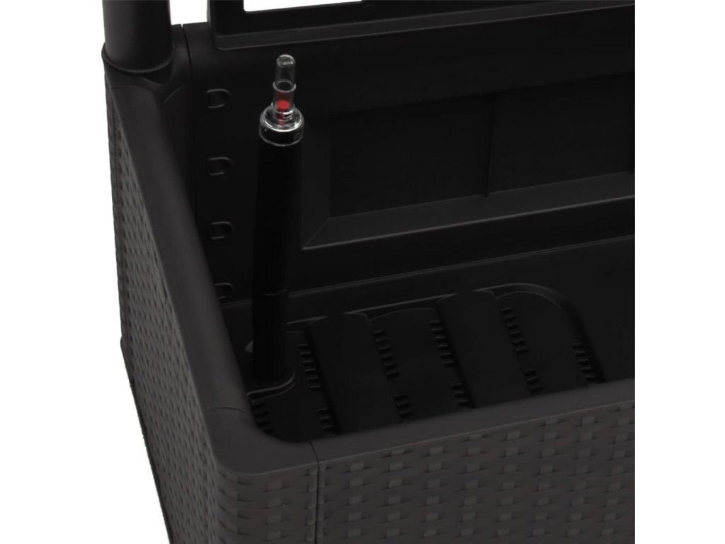 Skrzynka samonawadniająca z kratką, do stosowania wewnątrz i na zewnątrz , ze wskaźnikiem poziomu wody, wykonana z polipropylenu, kolor antracytowy, pojemność 90l, wymiary 100x43x142cm.