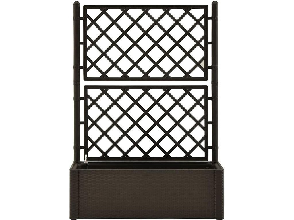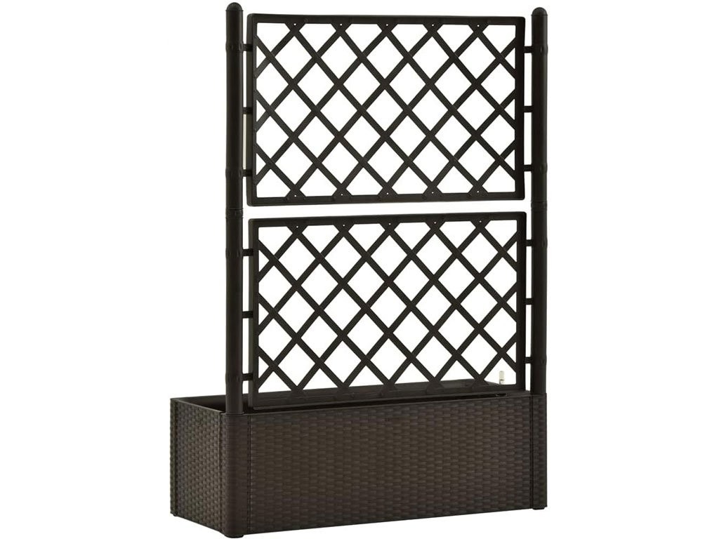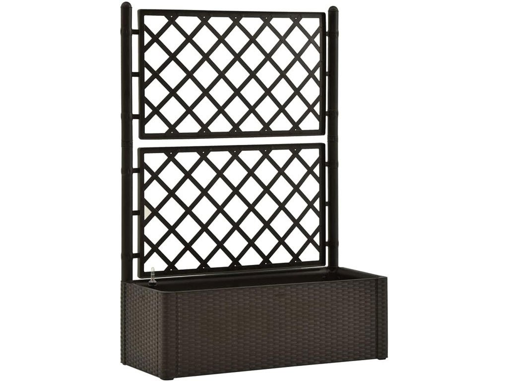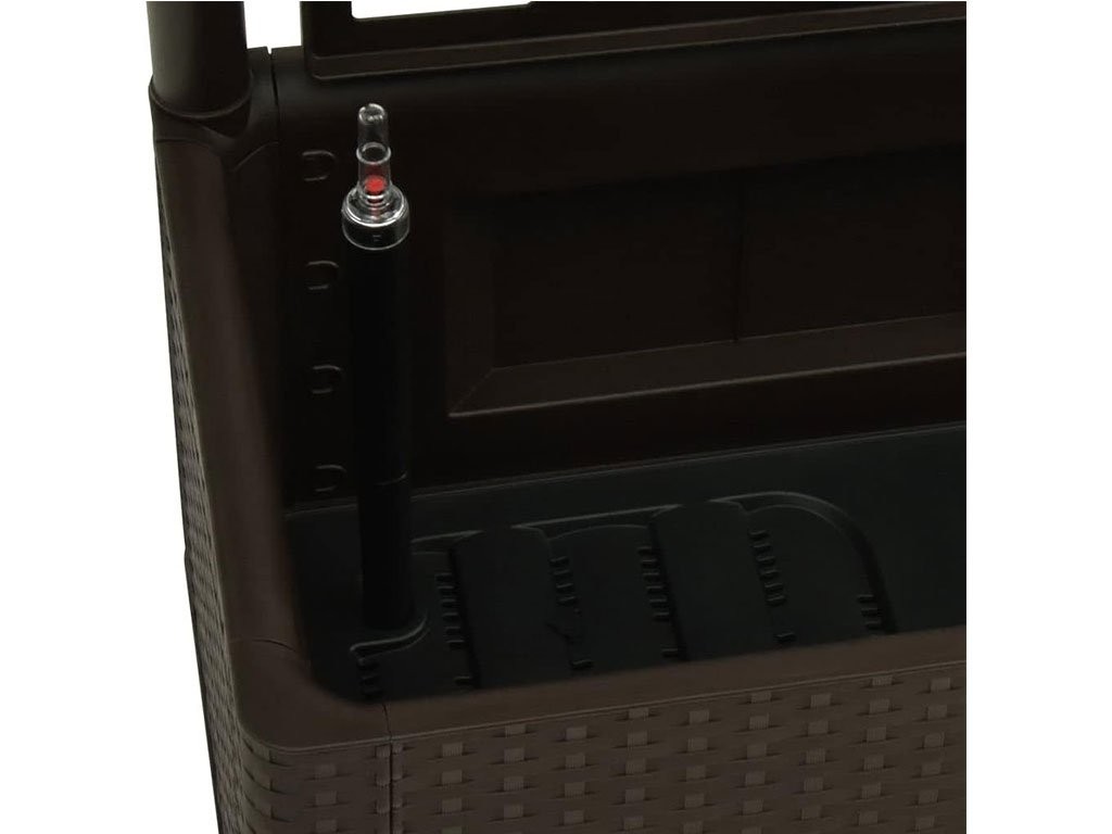 Skrzynka samonawadniająca z kratką, do stosowania wewnątrz i na zewnątrz , ze wskaźnikiem poziomu wody, wykonana z polipropylenu, w kolorze mokka, pojemność 90l, wymiary 100x43x142cm.