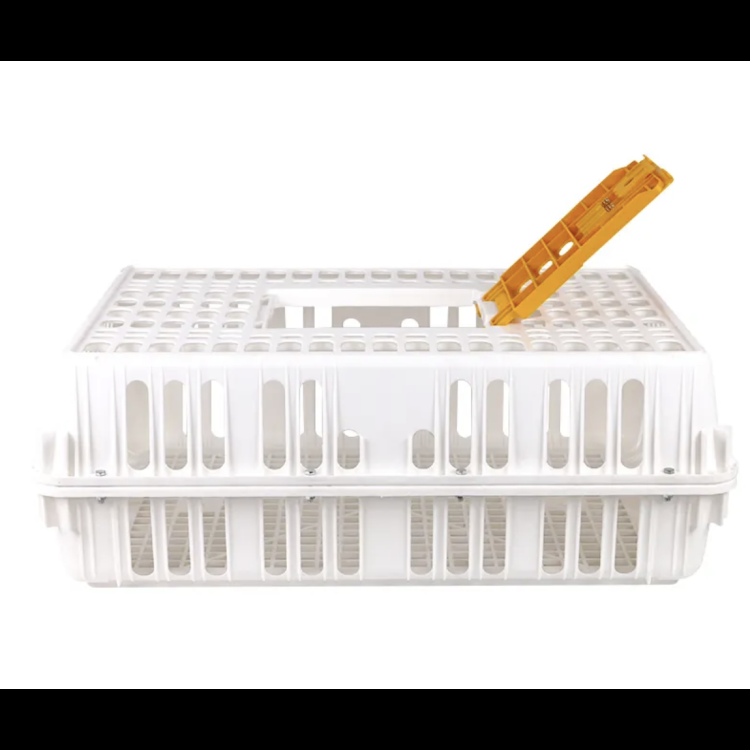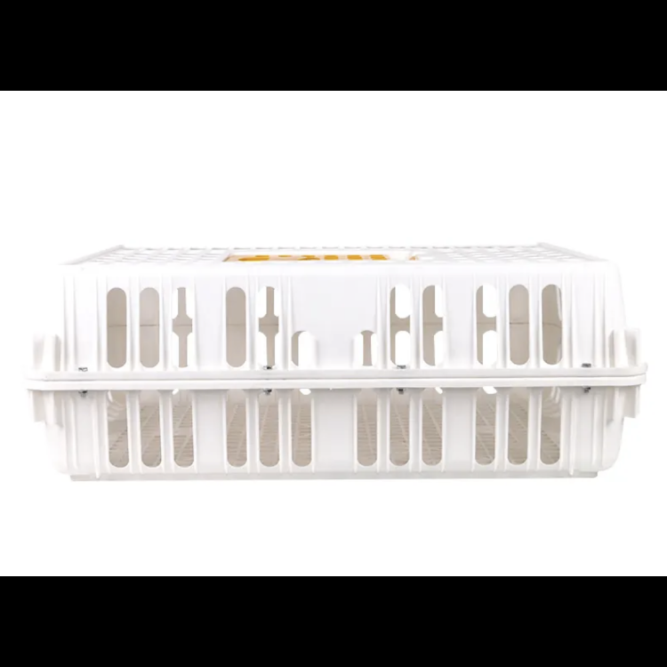 Ta skrzynia transportowa dla drobiu i innych małych zwierząt zapewnia wystarczająco dużo miejsca i wentylację, a jednocześnie szczeliny w podłodze są na tyle małe, że zapobiegają wpadaniu drobiu i wkładaniu przez niego łapek. Montaż jest bardzo prosty – wystarczy zrównać otwory w dwóch przeciwległych częściach i połączyć je śrubami i nakrętkami. Dzięki 16 przegubom klatka jest niezwykle stabilna. Po złożeniu drób można umieścić w klatce, otwierając drzwiczki w górnej części.