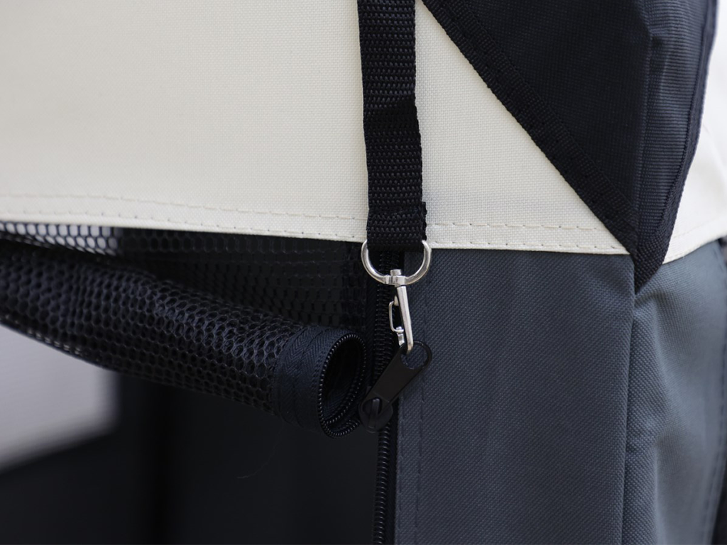 Transporter dla psa oferuje szereg przydatnych funkcji , które zapewnią Twojemu pupilowi komfort i bezpieczeństwo. Dzięki stabilnej konstrukcji z metalowymi ramami jest bardzo wytrzymały i trwały, co gwarantuje bezpieczny transport. Transporter wykonany jest z wysokiej jakości, zmywalnego nylonu , który jest łatwy w utrzymaniu. Miękka, wyjmowana wkładka z pluszu zapewnia psu komfort podczas podróży i można ją prać w temperaturze 30°C. Siatkowe wkładki zapewniają dobrą cyrkulację powietrza, dzięki czemu Twój pupil czuje się komfortowo nawet podczas dłuższych podróży. Dodatkowo, boczne okienko można zasłonić osłoną , chroniąc pupila przed ostrym słońcem, na przykład w letnie dni. Transporter można łatwo złożyć w kilka sekund i szybko złożyć po użyciu, oszczędzając miejsce.
