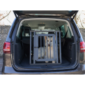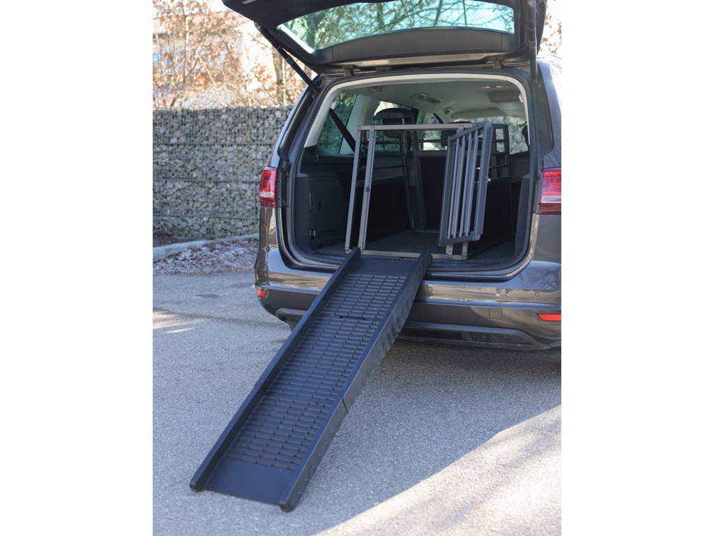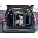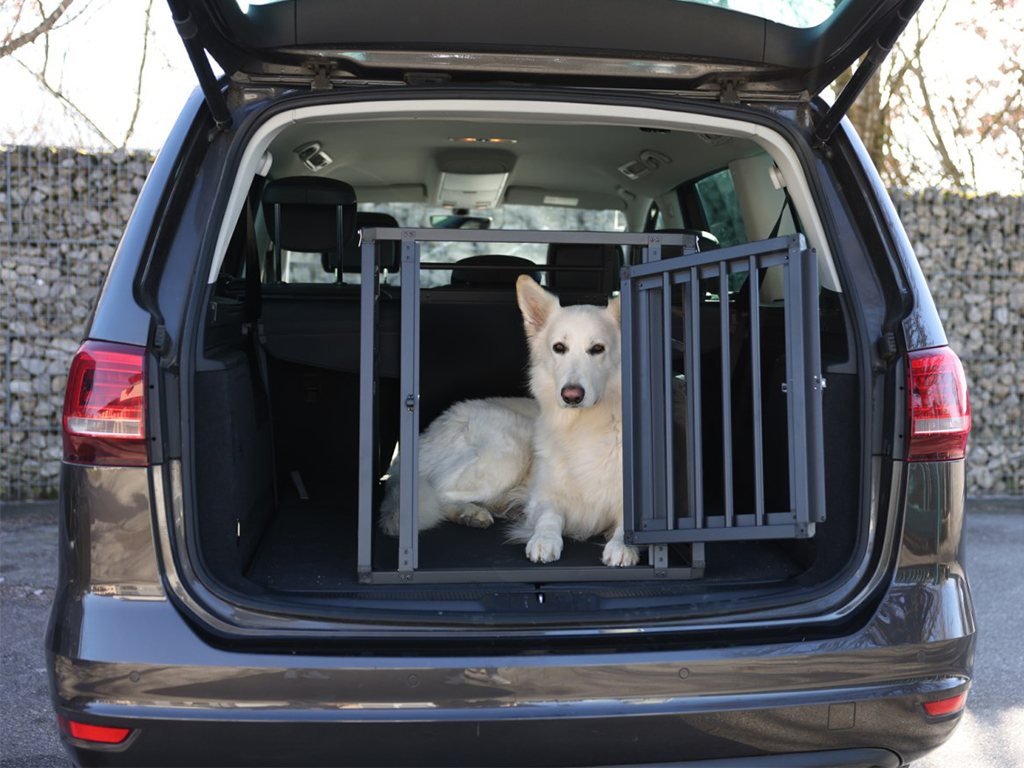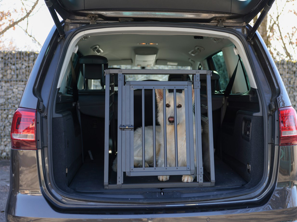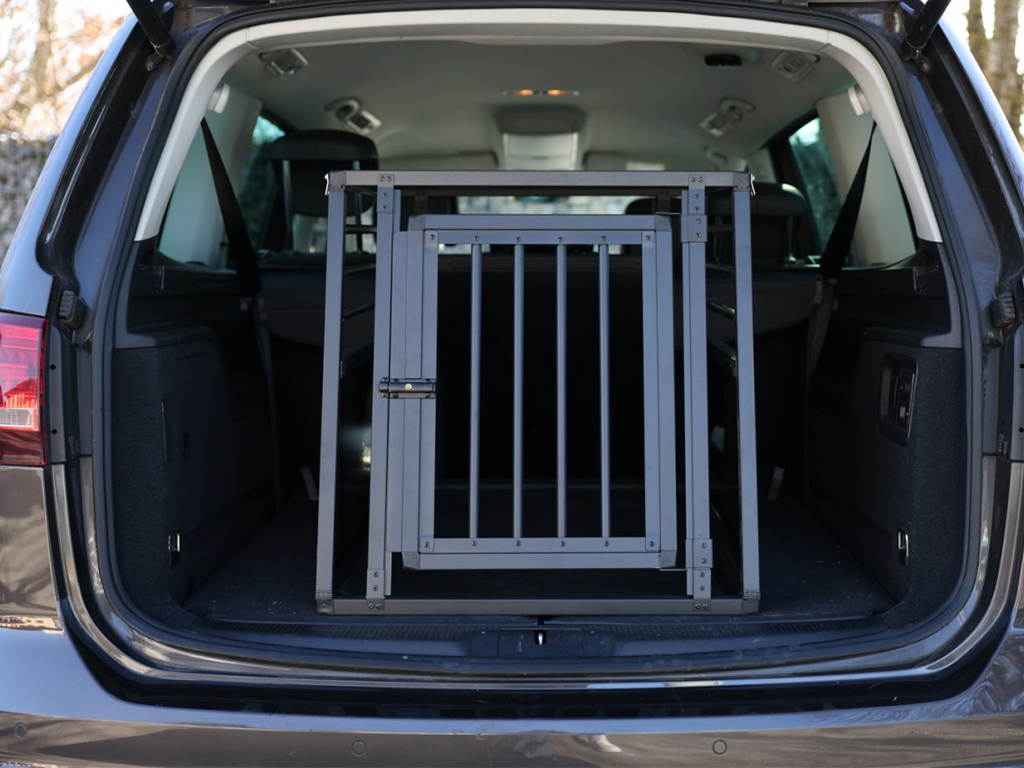 Transporter jest przeznaczony dla psów w bagażniku samochodu. Wymiary transportera to 77x55x50 cm. Twój pupil powinien mieć wystarczająco dużo miejsca, aby bezpiecznie stać i wygodnie się obracać w transporterze.