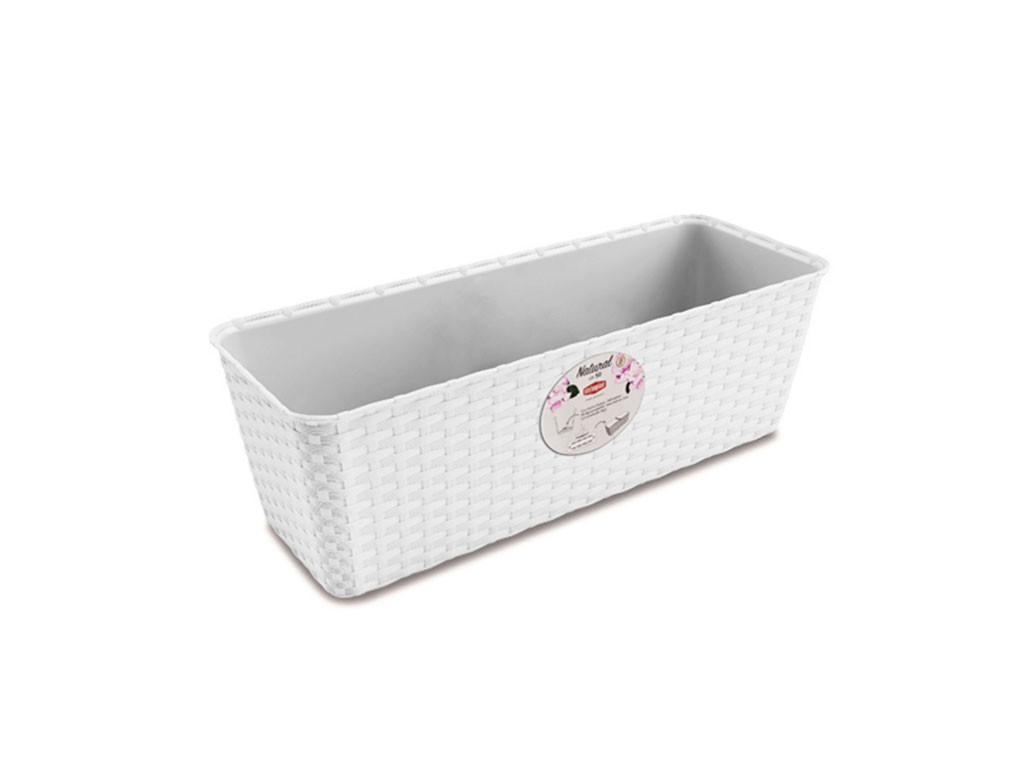 Skrzynka z drenażem na dnie, do stosowania na zewnątrz , wykonana z polipropylenu, w kolorze białym, pojemność 9,2l, wymiary 50x18x16cm.