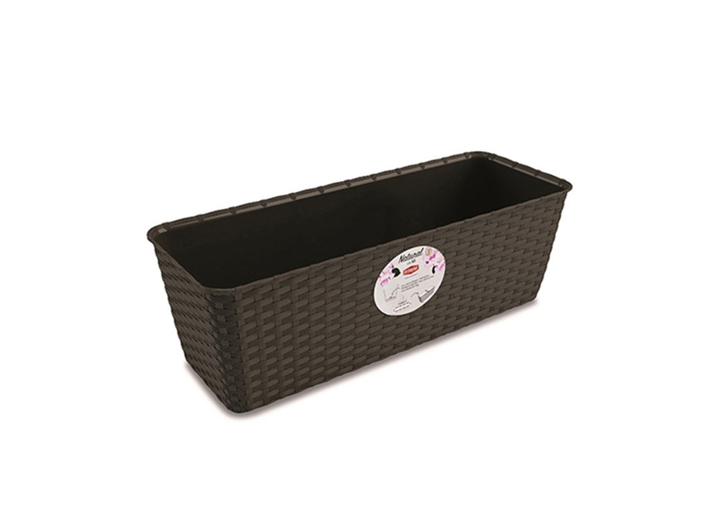 Skrzynka z drenażem na dnie, do stosowania na zewnątrz , wykonana z polipropylenu, kolor mokka, pojemność 9,2l, wymiary 50x18x16cm.