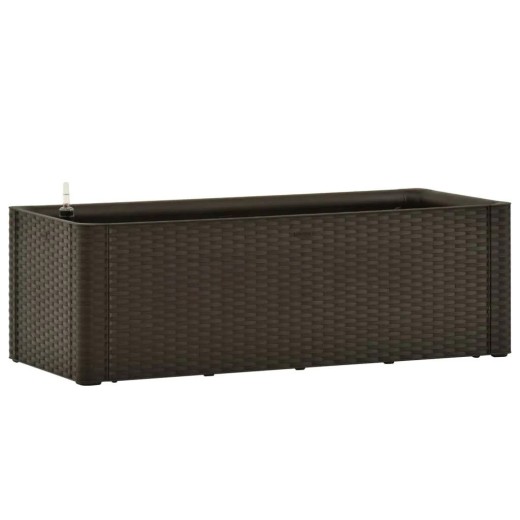 Skrzynka samonawadniająca , do użytku wewnątrz i na zewnątrz , ze wskaźnikiem poziomu wody, wykonana z polipropylenu, w kolorze mokka, pojemność 90l, wymiary 100x43x33cm.