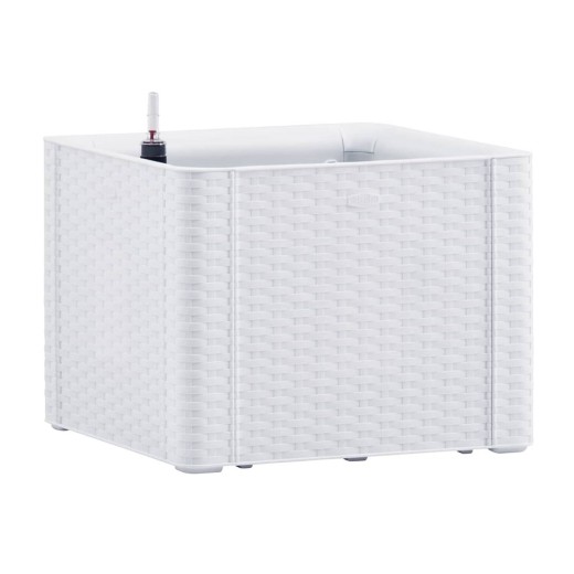 Skrzynka samonawadniająca , do użytku wewnątrz i na zewnątrz , ze wskaźnikiem poziomu wody, wykonana z polipropylenu, w kolorze białym, pojemność 35l, wymiary 43x43x33cm.