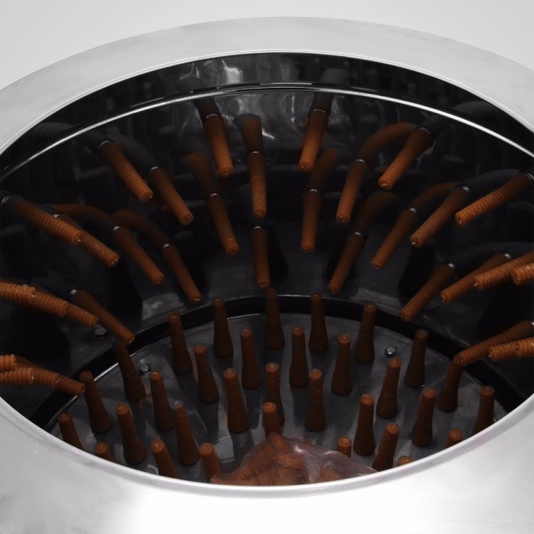 Po ugotowaniu drobiu na parze, umieść kawałki w bębnie, włącz urządzenie, a w ciągu kilku sekund uzyskasz idealnie oczyszczony drób. Dzięki przemyślanemu odpływowi, nadmiar piór jest automatycznie odprowadzany, co ułatwia czyszczenie i utrzymuje czystość w miejscu pracy.