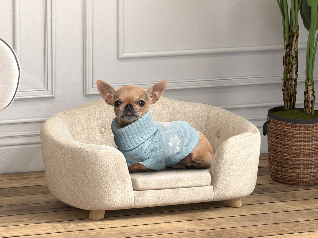 Sofa dla psa PAWHUT D04-196CW, kremowo-biała, 70x47x30 cm