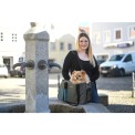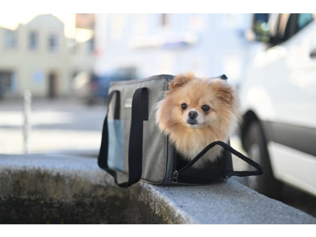 Torba zachwyci Cię swoimi funkcjami i doskonałym designem. Regulowany, wyściełany pasek można nosić na ramieniu lub w ręku . Aby zapewnić bezpieczeństwo Twojemu pupilowi podczas noszenia, możesz przypiąć ją do krótkiej smyczy i zamknąć w torbie za pomocą wkładki z siateczki, co zapewni optymalną cyrkulację powietrza. Boczny otwór z wstawką z siateczki można otworzyć , aby Twój pupil mógł obserwować otoczenie. Wzmocnione ścianki torby zapewniają bezpieczeństwo i wygodę Twojego pupila, a ścianka boczna zawiera schowek , w którym możesz przechowywać smakołyki lub smycz. Praktyczna, wzmocniona podkładka z pluszowym pokryciem służy jako wygodne miejsce do odpoczynku i jednocześnie utrzymuje kształt torby. Jeśli nigdzie nie podróżujesz ze swoim psem, możesz łatwo złożyć i schować torbę .