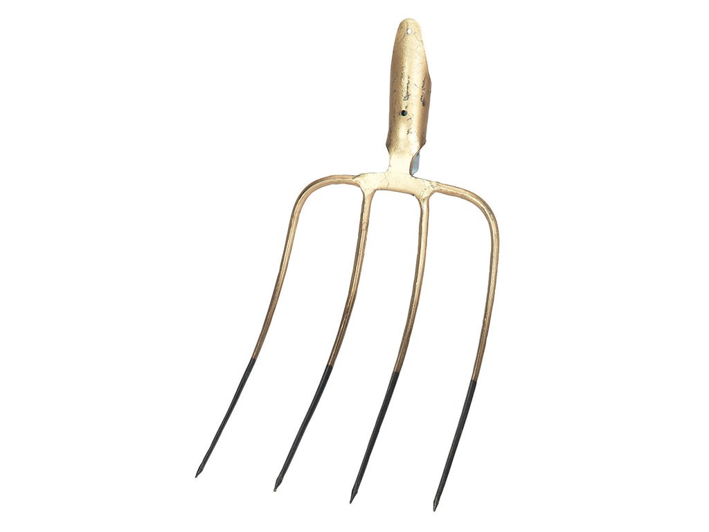 Wielofunkcyjne, kute ręcznie widły, 4 zęby , bez uchwytu, wykonane z wysokiej jakości stali, średnica obudowy 38 mm na uchwyt , wymiary (długość x szerokość) 31 x 23 cm .