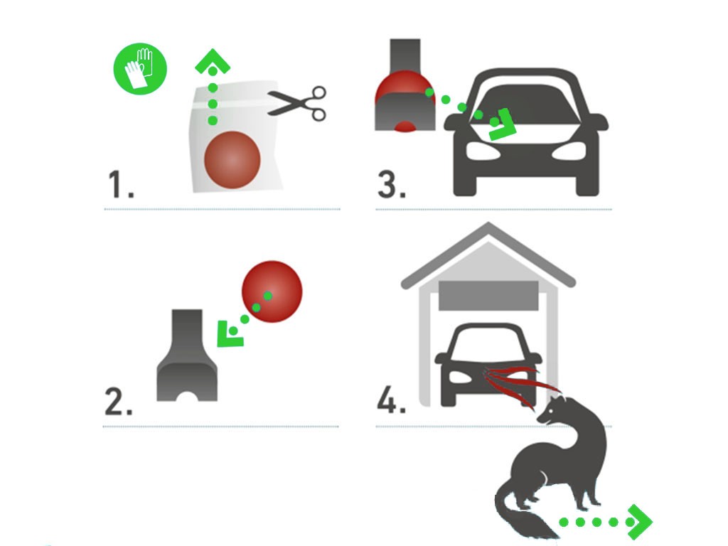 4. Efekt odstraszający kuli zapachowej jest natychmiastowy , ponieważ jest ona wykonana z celulozy i nasączona substancją odstraszającą, która jest bardzo nieprzyjemna dla kun, dlatego też powinny one unikać komory silnika od razu po jej zamontowaniu.