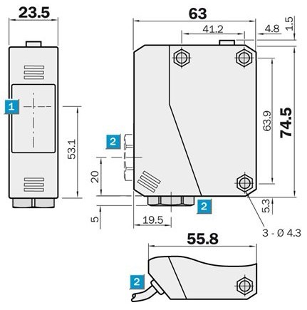 Optyczny system antykolizyjny przeznaczony głównie do suwnic pomostowych na tym samym torze. Zasięg do 10 ms z dołączonym reflektorem. Płynna regulacja odległości reakcji przełączania.