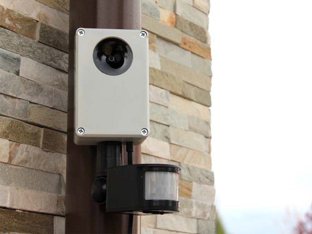 Model ten jest również wyposażony w czujnik ruchu działający w promieniu 12 m, co oznacza, że czujnik obejmuje obszar około 220 m² . Odstraszacz włącza się automatycznie po każdym ruchu zwierzęcia i wyłącza po ustawionym czasie. Czujnik posiada 3 ustawienia – czas działania, czułość i jasność.
