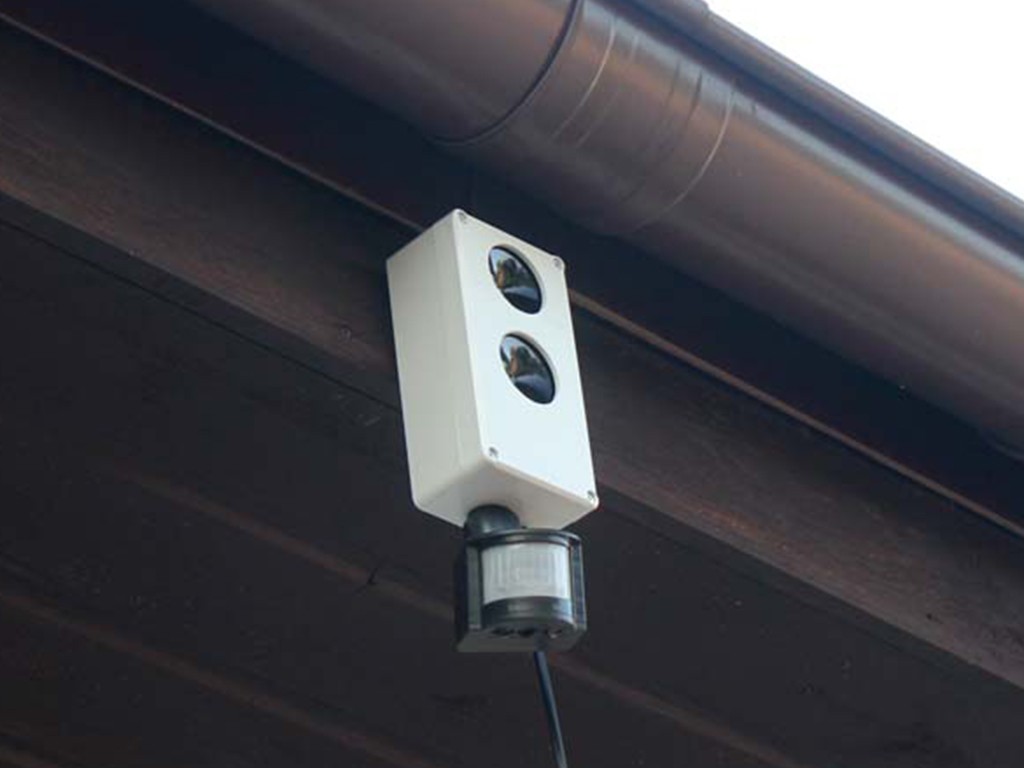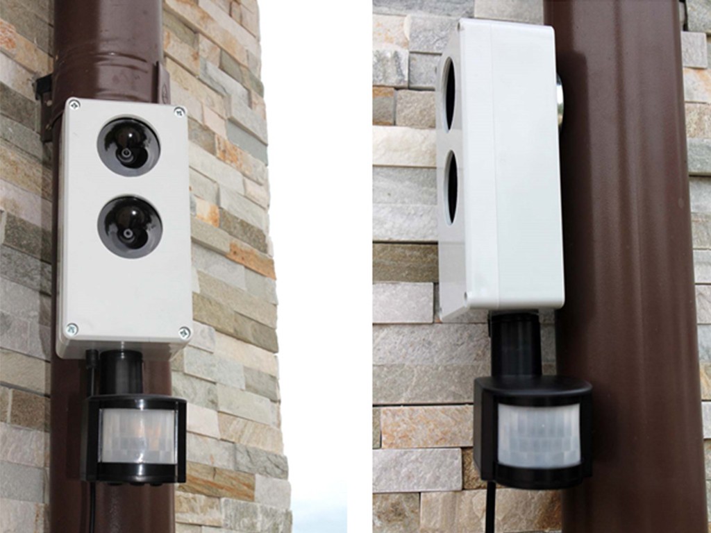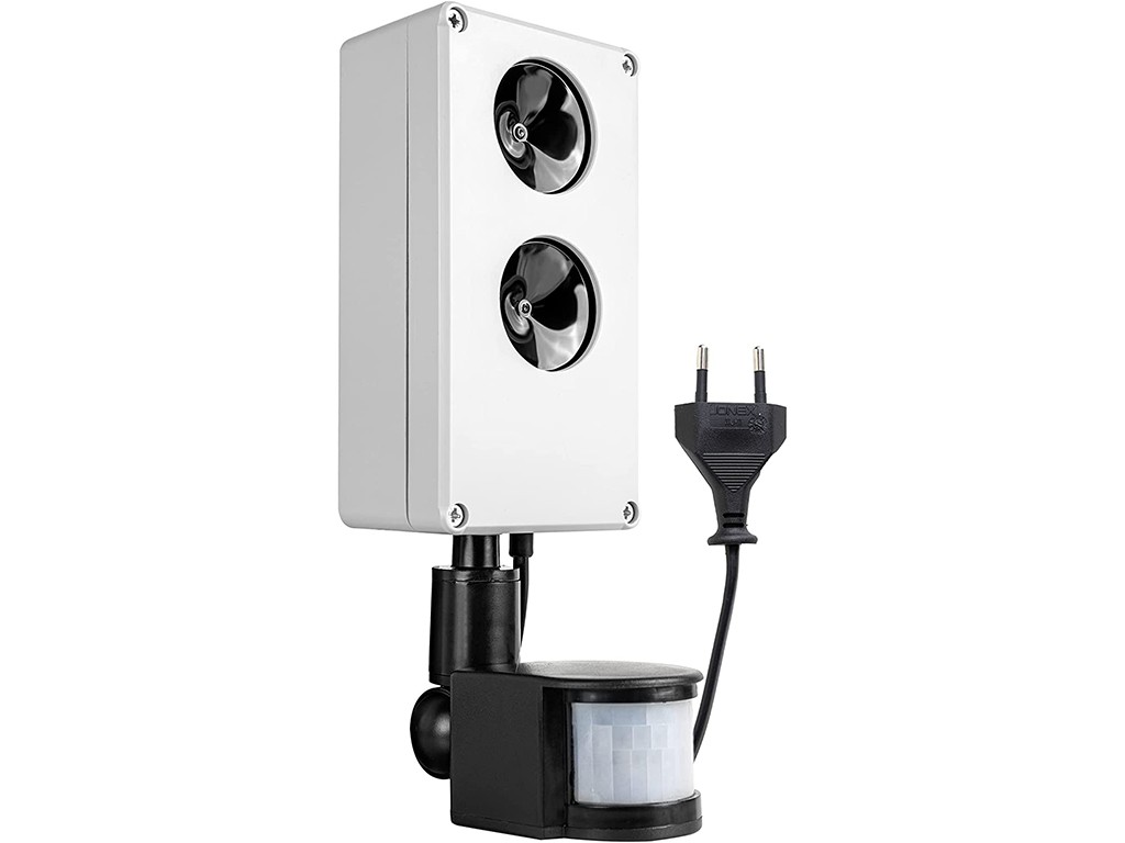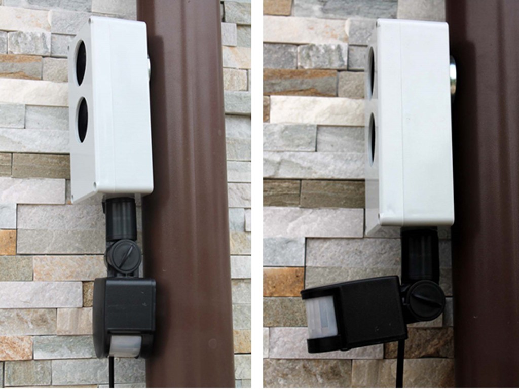 Model ten jest również wyposażony w czujnik ruchu działający w promieniu 12 m, co oznacza, że czujnik obejmuje obszar około 220 m² . Odstraszacz włącza się automatycznie po każdym ruchu zwierzęcia i wyłącza po ustawionym czasie. Czujnik posiada 3 ustawienia – czas działania, czułość i jasność.