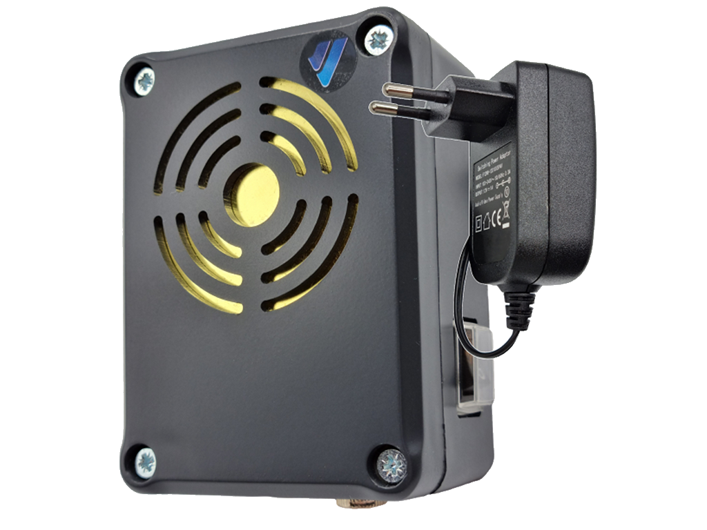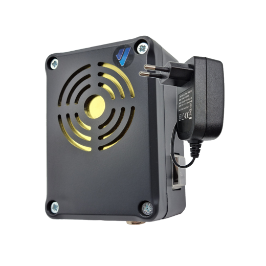 Urządzenie zasilane jest za pomocą dołączonego do zestawu zasilacza 12 V. Odstraszacz posiada praktyczny włącznik/wyłącznik w obudowie ochronnej, dzięki czemu można go łatwo włączać i wyłączać bez konieczności odłączania zasilacza od sieci.
