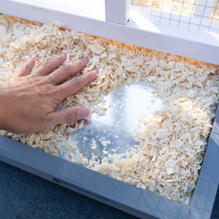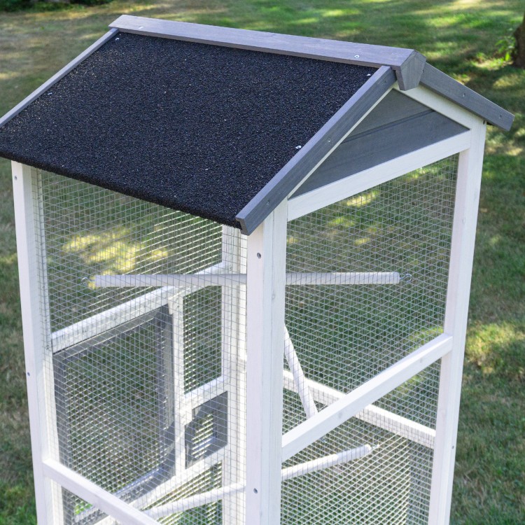 Dach pokryty jest asfaltem. W zestawie znajdują się trzy grzędy, które można indywidualnie umieścić w wolierze. Ptaki mogą na nich odpocząć i spać. Mała drabinka umożliwia im wchodzenie i schodzenie. W dolnej części woliery znajduje się szuflada na odchody. Wyjmowana szuflada na odchody ułatwia czyszczenie.
