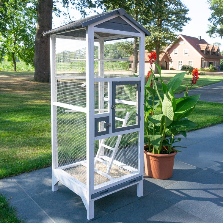 Woliera dla ptaków - rozmiar M - szara, 72 x 60 x 167 cm