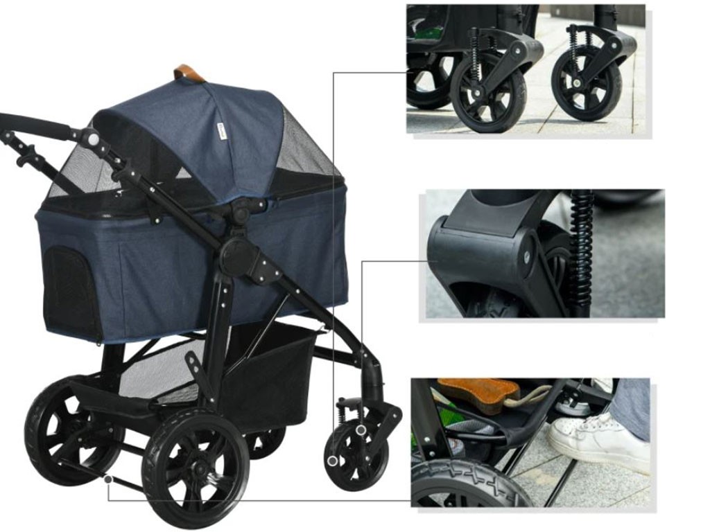 Wózek dla psa 2 w 1 PAWHUT D00-123BU, ciemnoniebieski