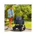 Połączenie wózka i torby podróżnej to świetne rozwiązanie nie tylko na spacery, ale także podczas podróży z psem. Torba sprawdzi się jako miejsce odpoczynku dla psa, np. w pokoju hotelowym. W wersji spacerowej możesz spacerować po mieście, parku i trudniejszym terenie, nie ograniczając psu ruchów. Komfort jazdy w terenie zapewniają podwójne, obrotowe koła przednie ze sprężynami oraz tylne koła stałe, zabezpieczone dwoma hamulcami. Dodatkowo, wysokość rączki wózka możesz regulować w zależności od potrzeb.