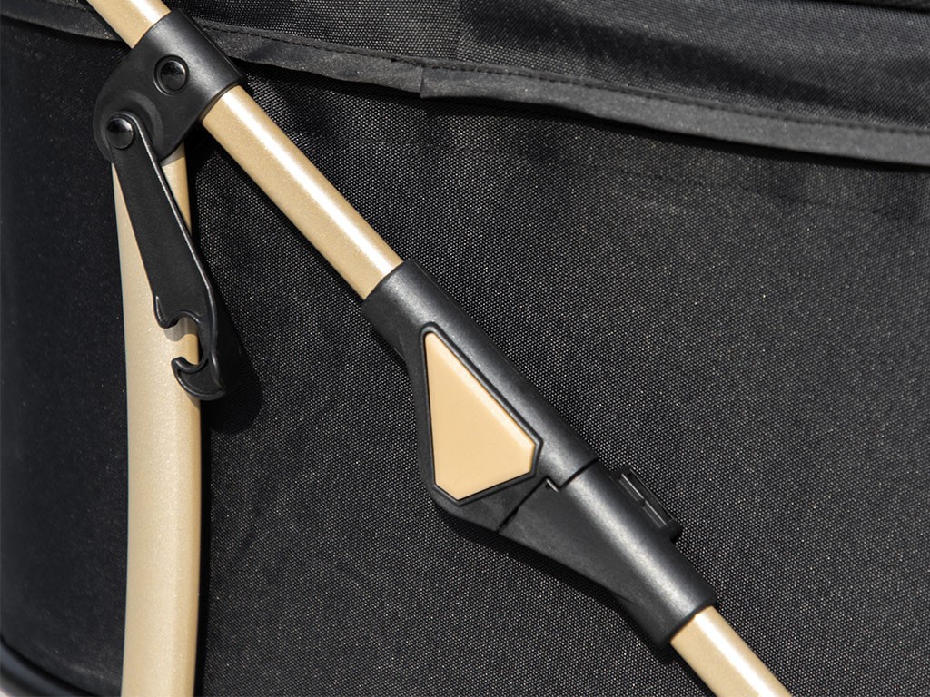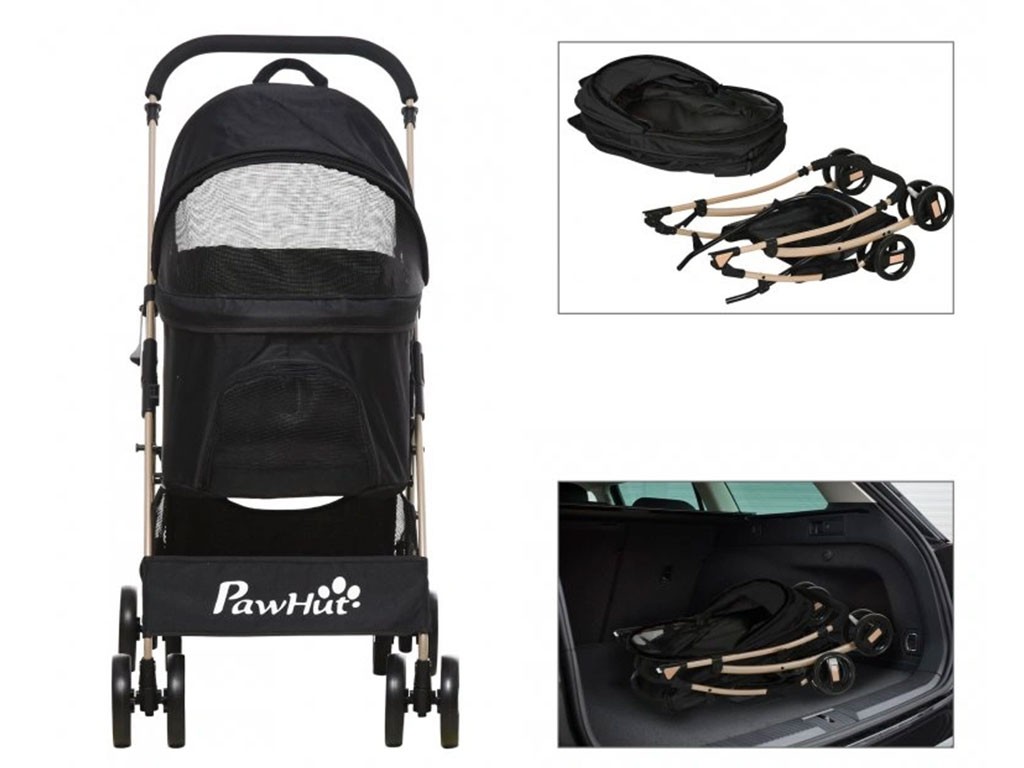 Wózek jest łatwy w przechowywaniu. W kilka chwil można złożyć cały wózek i schować go lub przygotować do transportu samochodem. Koszyk można łatwo zdemontować z wózka, tworząc przenośną torbę dla psa, a stalową ramę można złożyć. Sam koszyk/torba również jest składana. Jeśli chcesz po prostu zapewnić psu doskonały widok podczas jazdy, wystarczy odpiąć i otworzyć 4-stopniowo składaną budkę.