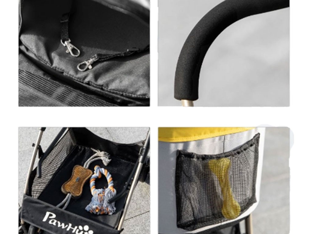 Wózek jest łatwy w przechowywaniu. W kilka chwil można złożyć cały wózek i schować go lub przygotować do transportu samochodem. Koszyk można łatwo zdemontować z wózka, tworząc przenośną torbę dla psa, a stalową ramę można złożyć. Sam koszyk/torba również jest składana. Jeśli chcesz po prostu zapewnić psu doskonały widok podczas jazdy, wystarczy odpiąć i otworzyć 4-stopniowo składaną budkę.