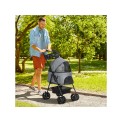 Ten wygodny wózek dla psa sprawdzi się podczas spacerów po mieście lub w parku. Przyjemną jazdę zapewniają podwójne, obrotowe koła przednie i podwójne, stałe koła tylne, które można zabezpieczyć dwoma hamulcami.