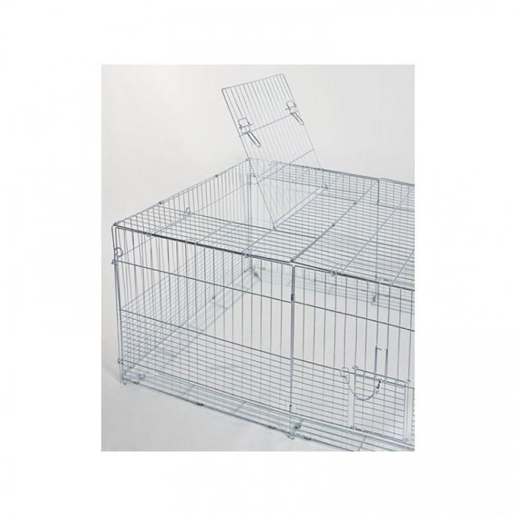 Ocynkowany wybieg dla królików , innych gryzoni i drobiu , szczególnie odpowiedni dla ich potomstwa , dzięki gęstszej siatce w dolnej części.