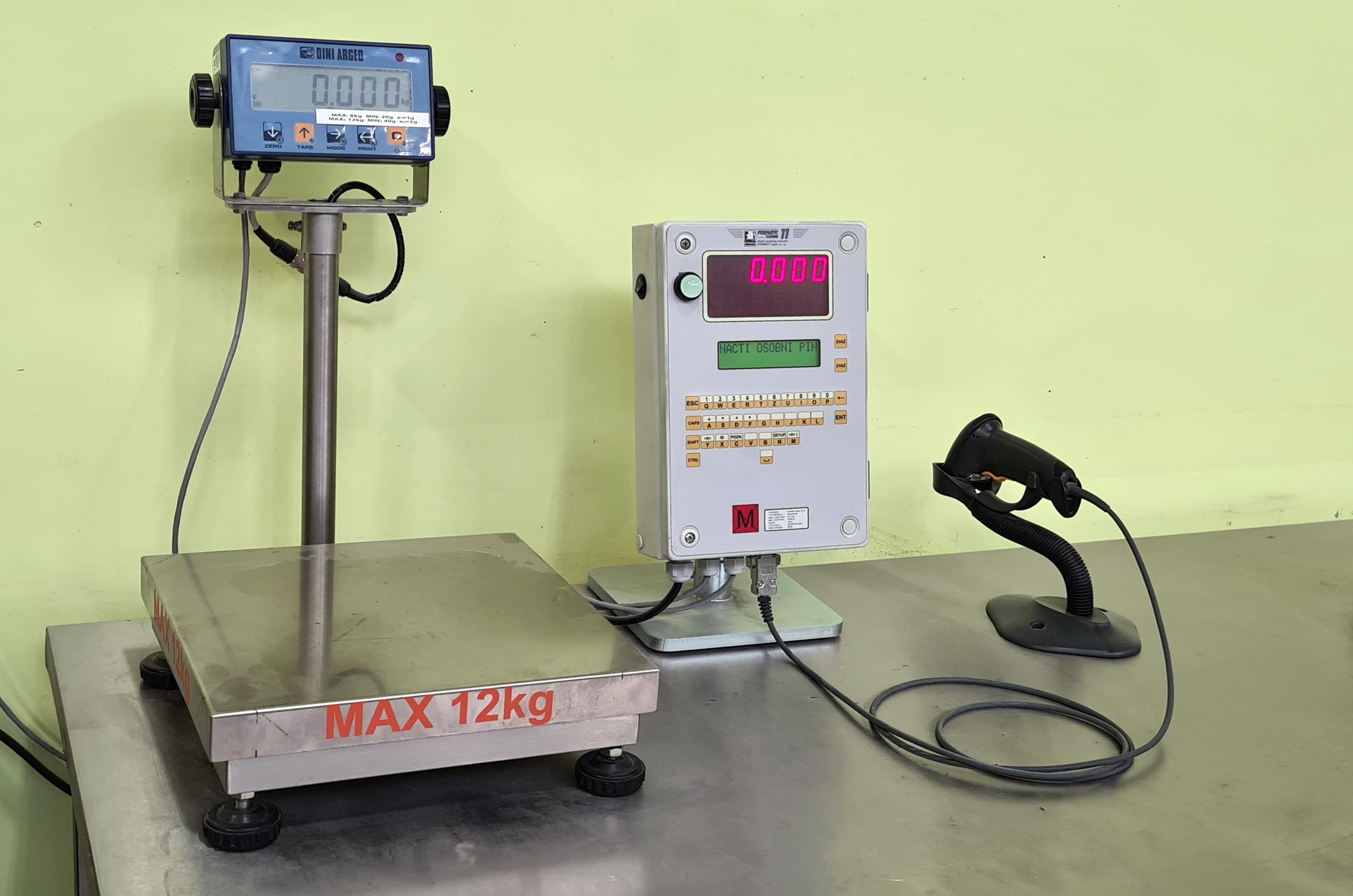 Waga do sprawdzania i rejestrowania zawartości opakowań workowych z podłączeniem do komputera i czytnikiem kodów kreskowych