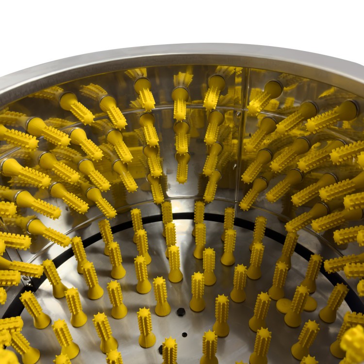Nasza skubarka do drobiu jest bardzo łatwa w demontażu i czyszczeniu , aby można ją było ponownie używać. Z boku urządzenia znajdują się metalowe klipsy, za pomocą których można zdemontować cały bęben i wyczyścić skubarkę.