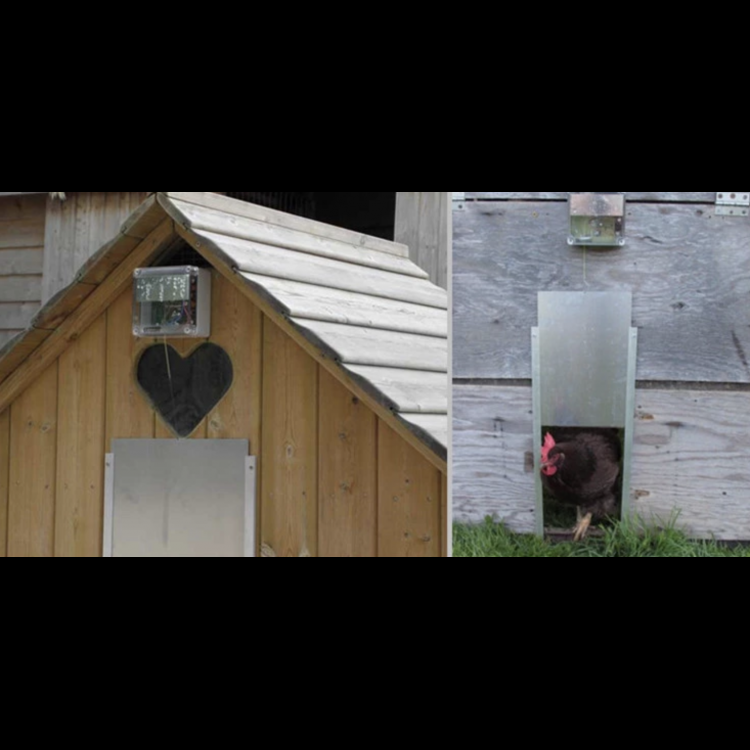 Zestaw 4 rolek do drzwi automatycznych. Stosowany, gdy kurnik jest zbyt niski i trzeba umieścić jednostkę sterującą z boku.
