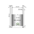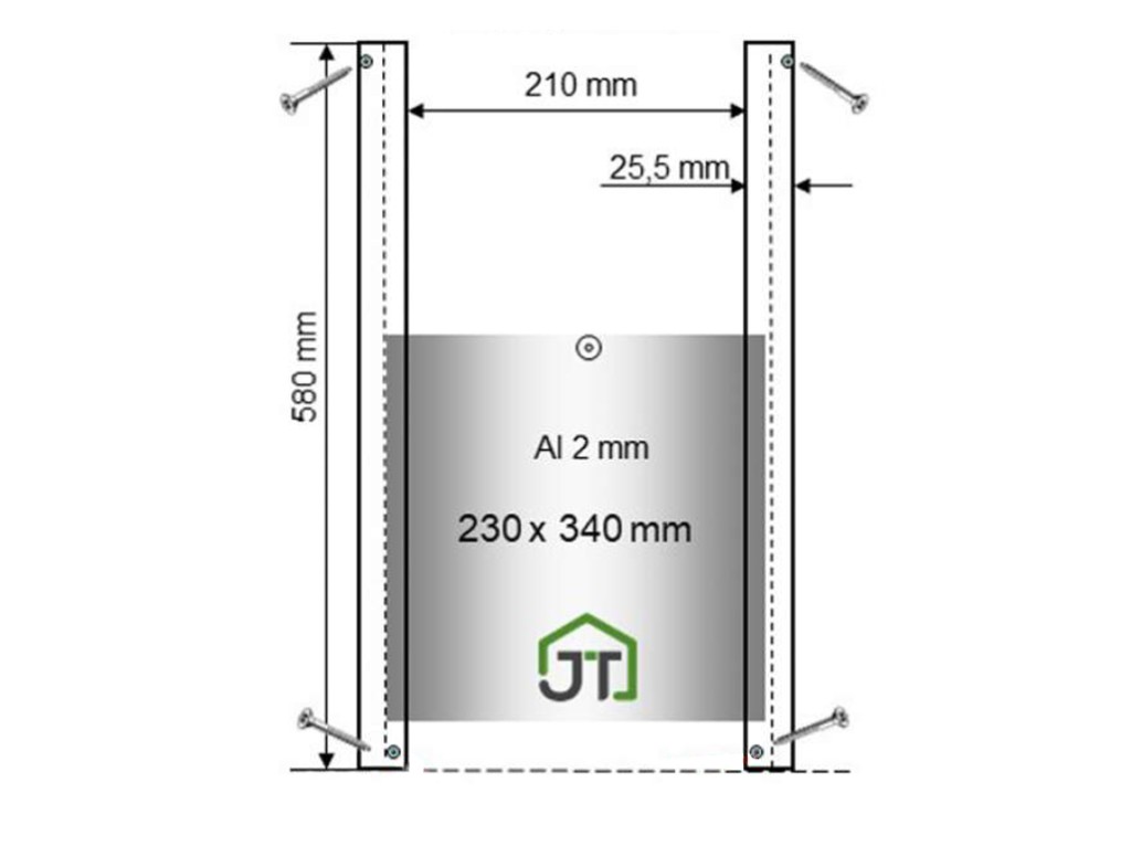 Wymiary całego systemu zamykania, łącznie z prowadnicami, wynoszą 26 x 58 cm . Wymiary poszczególnych drzwiczek to 23 x 34 cm . Drzwiczki te idealnie nadają się dla kur lub mniejszych kaczek.