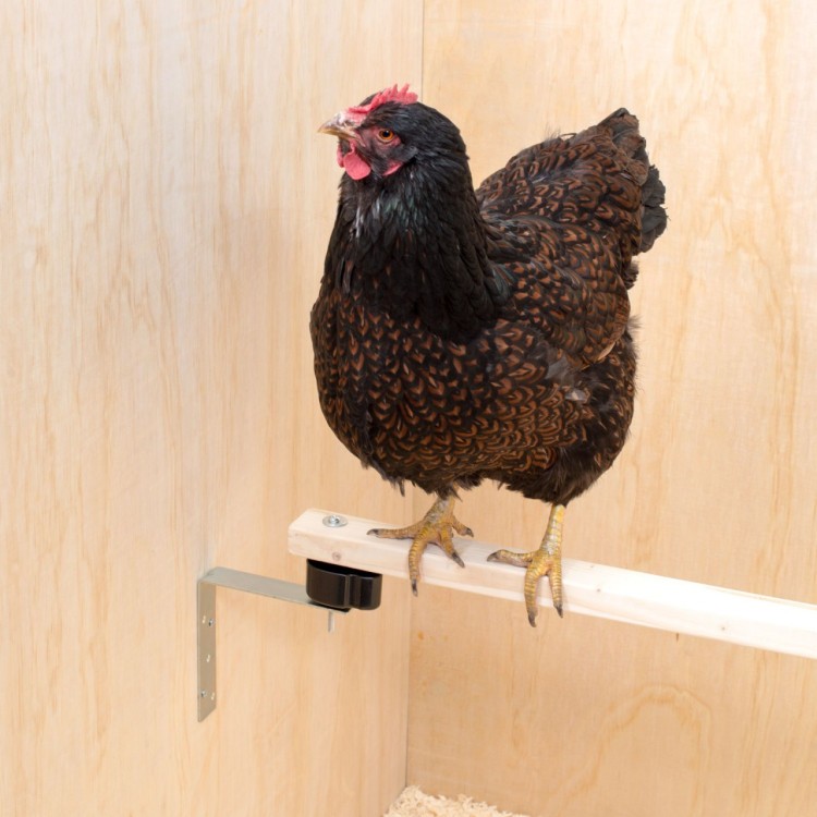 Zestaw składa się z dwóch obrotowych tacek. Dzięki możliwości ich obracania, można je bardzo łatwo napełnić olejem. Do zestawu dodaliśmy również dwa długie uchwyty ścienne z nakrętką dociskową i elementami mocującymi. Bardzo ważne jest zachowanie minimalnej odległości 8 cm między grzędą a ścianą kurnika. Tylko w ten sposób zapobiegniemy przedostaniu się trzmieli do kur.
