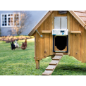 Zestaw do automatycznego otwierania/zamykania , rama z modułem i drzwiami zabezpieczającymi z prowadnicami, czujnik światła, timer, automatyczna kalibracja drzwi, czytelny wyświetlacz LCD, funkcja automatycznego zatrzymania w przypadku napotkania przeszkody, odpowiedni do temperatur od -20°C do +60°C, zasilany 4 bateriami AA/zasilaczem 9 V, wymiary systemu: 31,5 x 70 cm, wymiary drzwi: 26 x 29 cm.