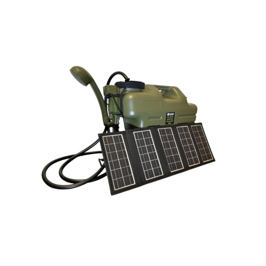 Zestaw - prysznic z akumulatorem + panel solarny 10W + pojemnik na wodę 18L
