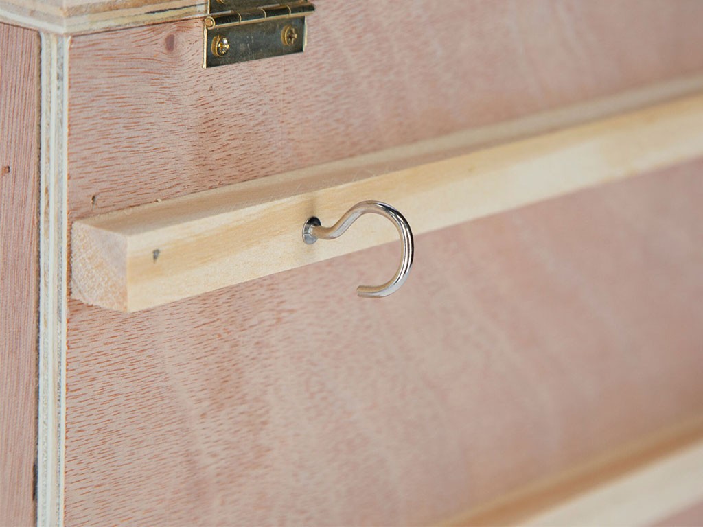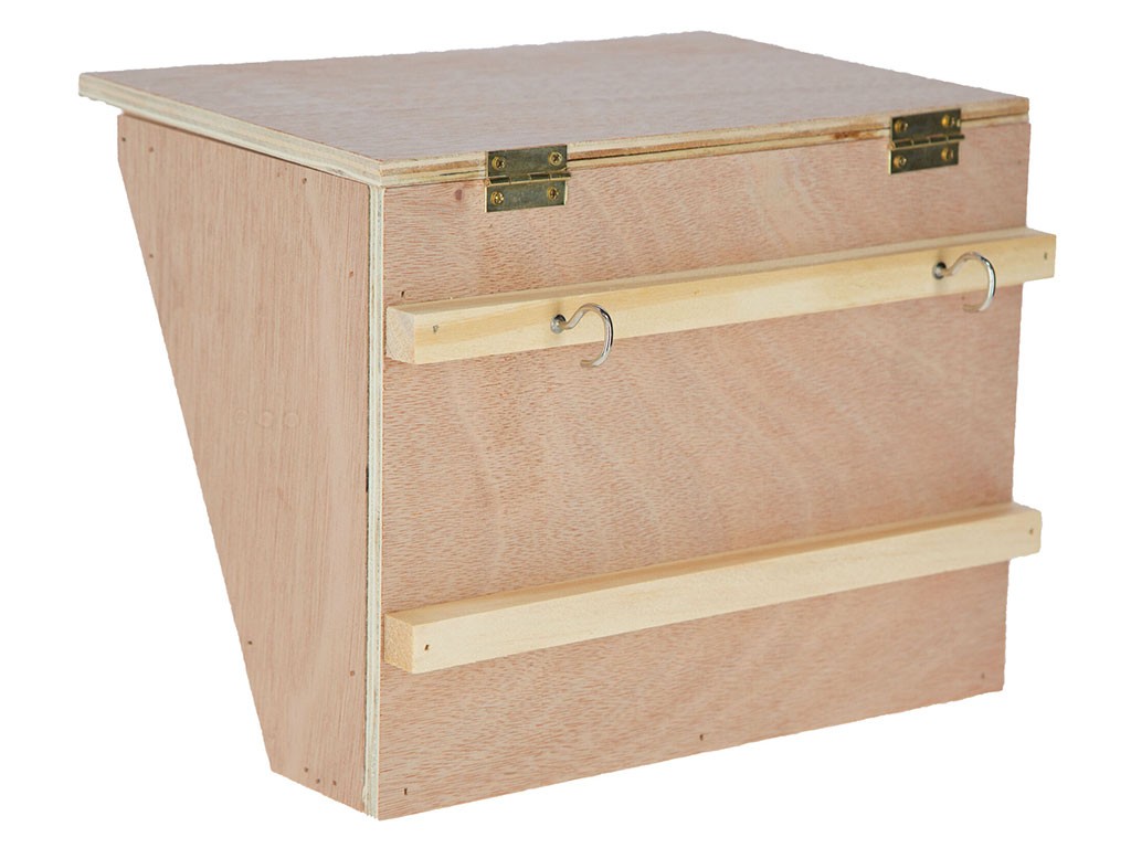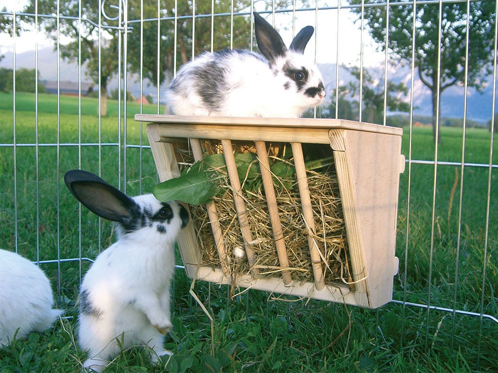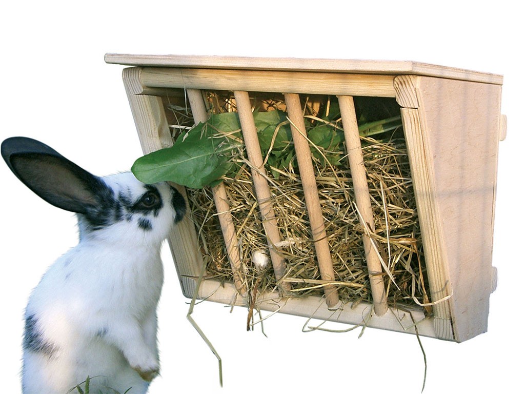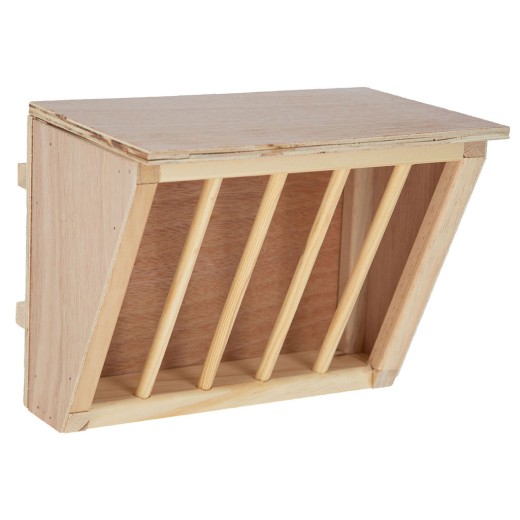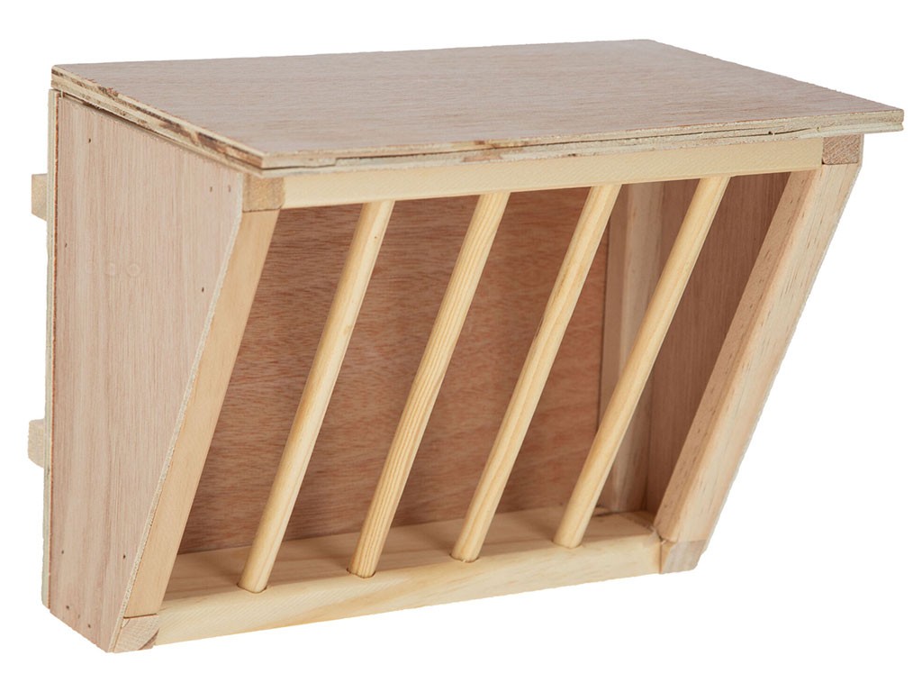 Żłób dla królików, ochrona przed zanieczyszczeniem paszy , wykonany z wysokiej jakości drewna, łatwy montaż za pomocą 2 haków , wymiary 25x17x20 cm.